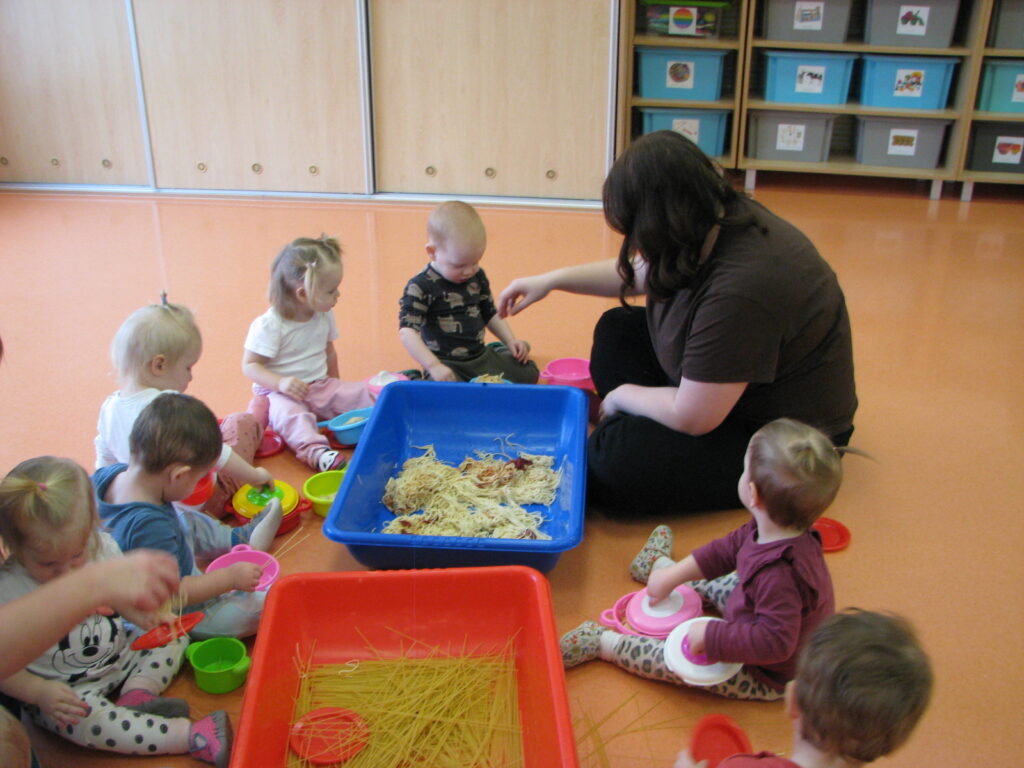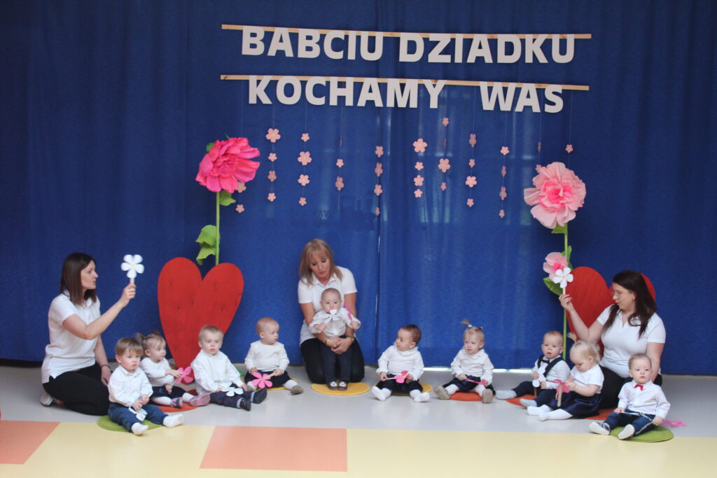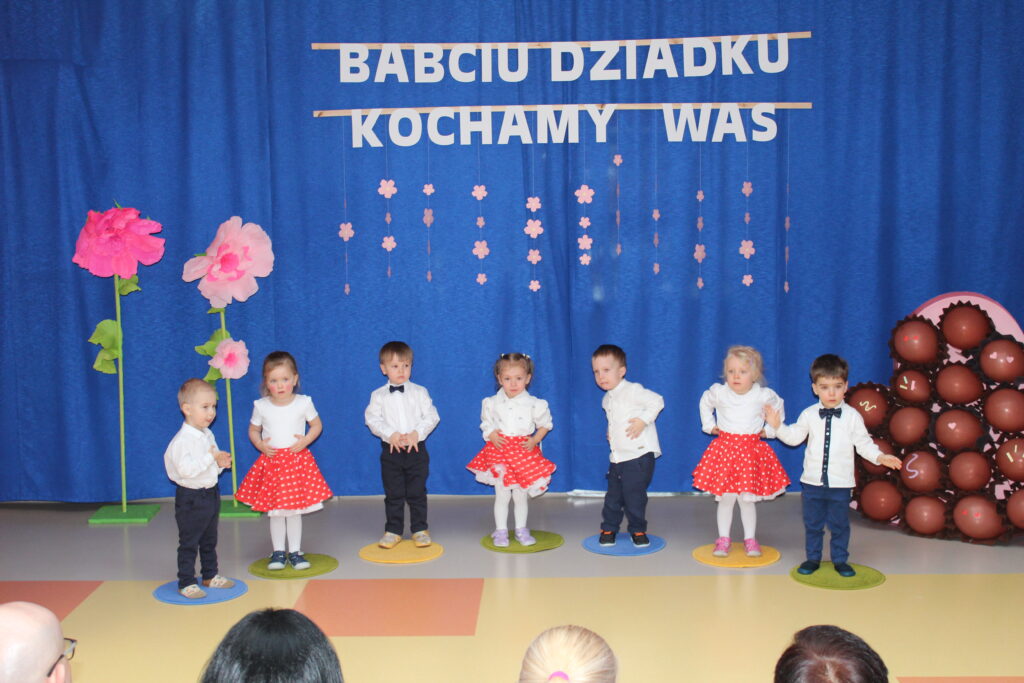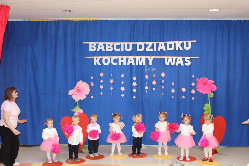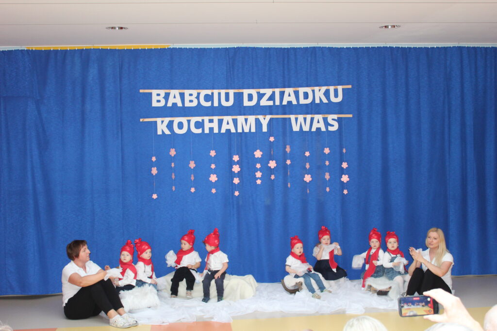 Grupa maluszków podczas występu z okazji Dnia Babci i Dziadka